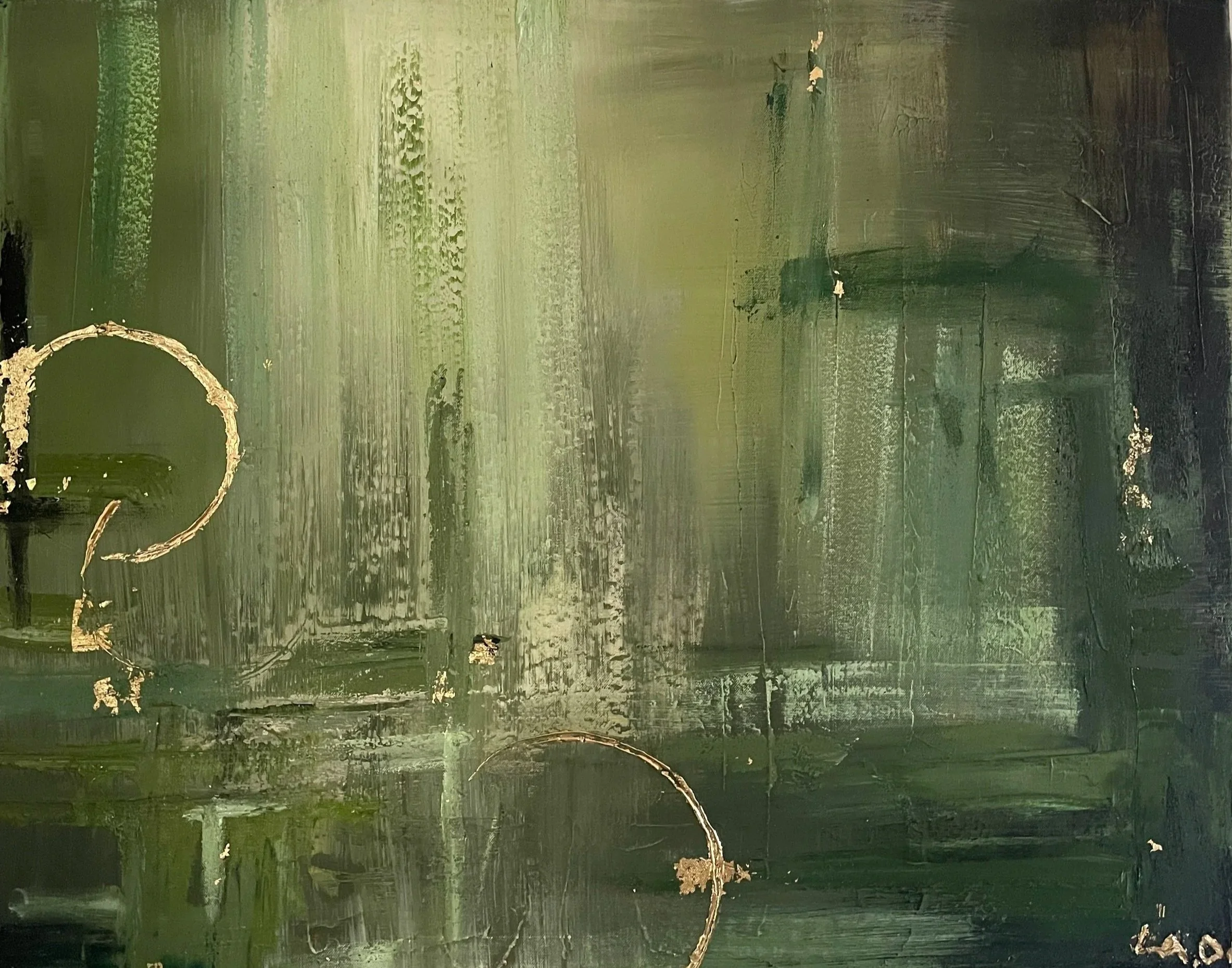 Mixed mediums (oil, gold leaf) on canvas.